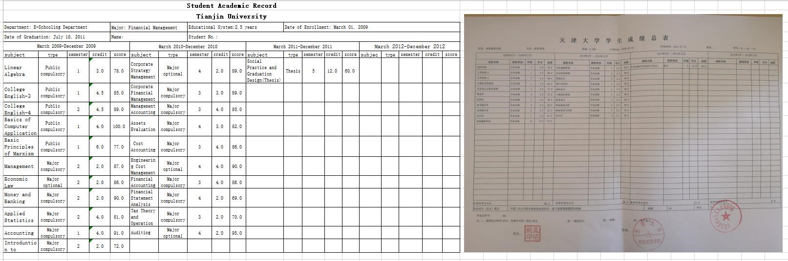 成績(jī)單翻譯